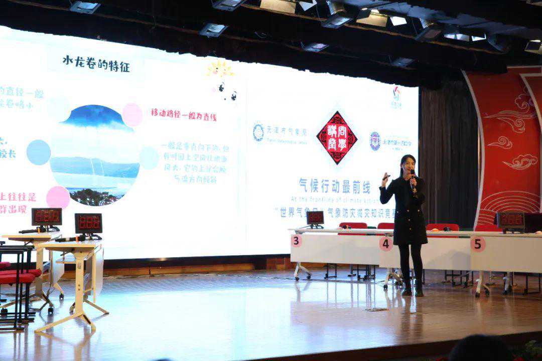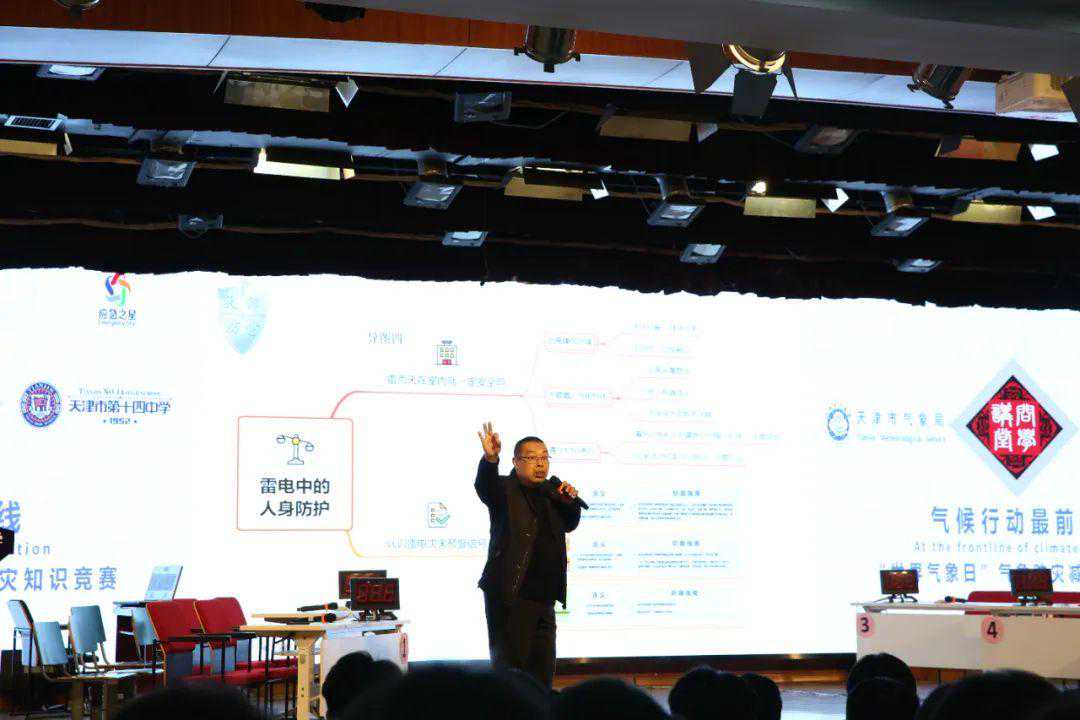 3月18日,在第64个世界气象日即将到来之际,天津市气象局联合天津市第十四中学开展“探索气象奥秘科教融合育人”气象科普进校园活动,并将其融入该校“问学讲堂”教育教学体系。本次活动由天津市人工影响天气办公室、天津市突发公共事件预警信息发布中心、天津市防雷技术中心有限责任公司、北辰区气象局联合承办,创新将气象科普讲座与气象知识竞赛相结合,打破科普知识单项灌输模式,促进双向互动体验,通过竞赛检验学生们对气象知识的掌握程度。学校共组织400余名学生参加活动。