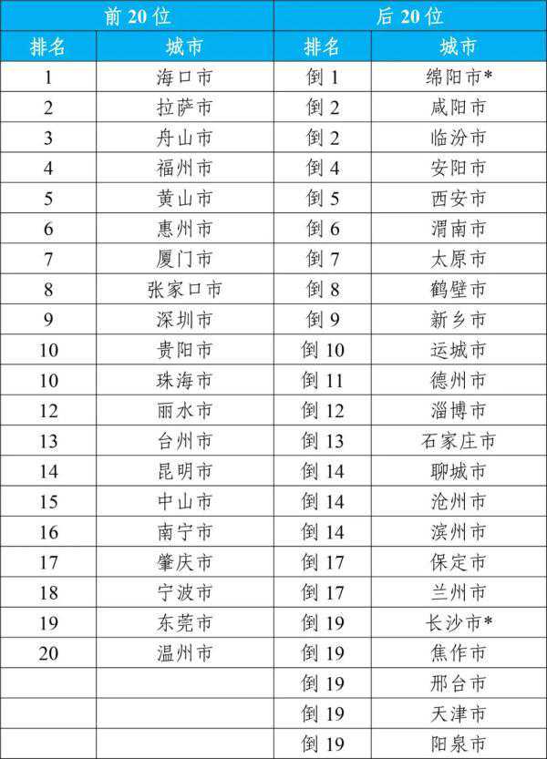 1—12月,168个重点城市中:空气质量排名前20位城市依次是海口、拉萨和舟山等城市(从第1名至第20名);空气质量排名后20位城市依次是绵阳、咸阳和临汾等城市(从倒数第1名至并列倒数第19名)。空气质量变化排名前20位城市依次是漯河、驻马店和鹤壁等城市(从第1名至并列第20名);空气质量变化排名后20位城市依次是绵阳、长沙和南充等城市(从倒数第1名至倒数第20名)。其中,绵阳市科技城新区的高新区自来水公司站点4月和5月、长沙市开福区的伍家岭站点6月受到严重人为干扰,对所在城市当月六项污染物浓度进行了最大值替代处理。见附表2、3。