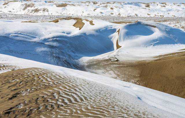 将近半米厚的白雪和沙漠混合在一起,真的是别有一番风味。