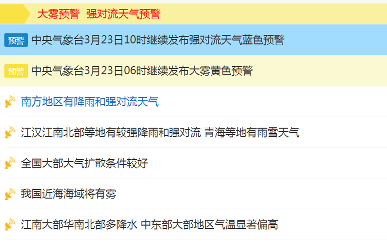3月23日,也是真正入春之后,预警频发的一天。中央气象台从早6时开始,连续发布了大雾黄色预警和强对流蓝色预警。