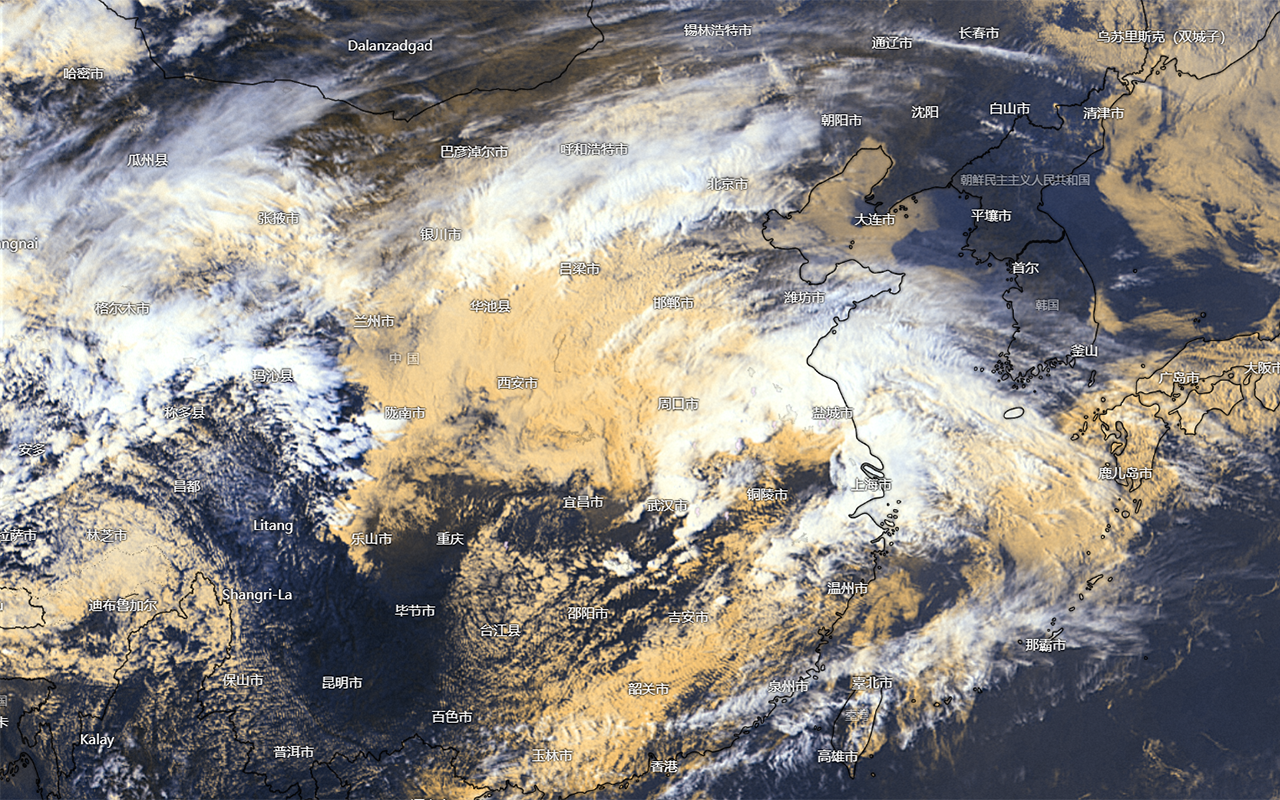 经过几天的晴朗天气,原本平静的我国天气,突然变得不平静起来。3月23日上午10时30分,根据风云四号拍摄的实时卫星云图来看,整个黄土高原、青藏高原北部和东部,除华北平原中北部、四川中南部、云南、贵州西部、山东半岛以外,长城以南的多数地区,已经笼罩了一层厚厚的云层。可见降水云系已经完全铺开,过去5天的晴热天气暂时告一段落,新一轮的降雨就要开始了!