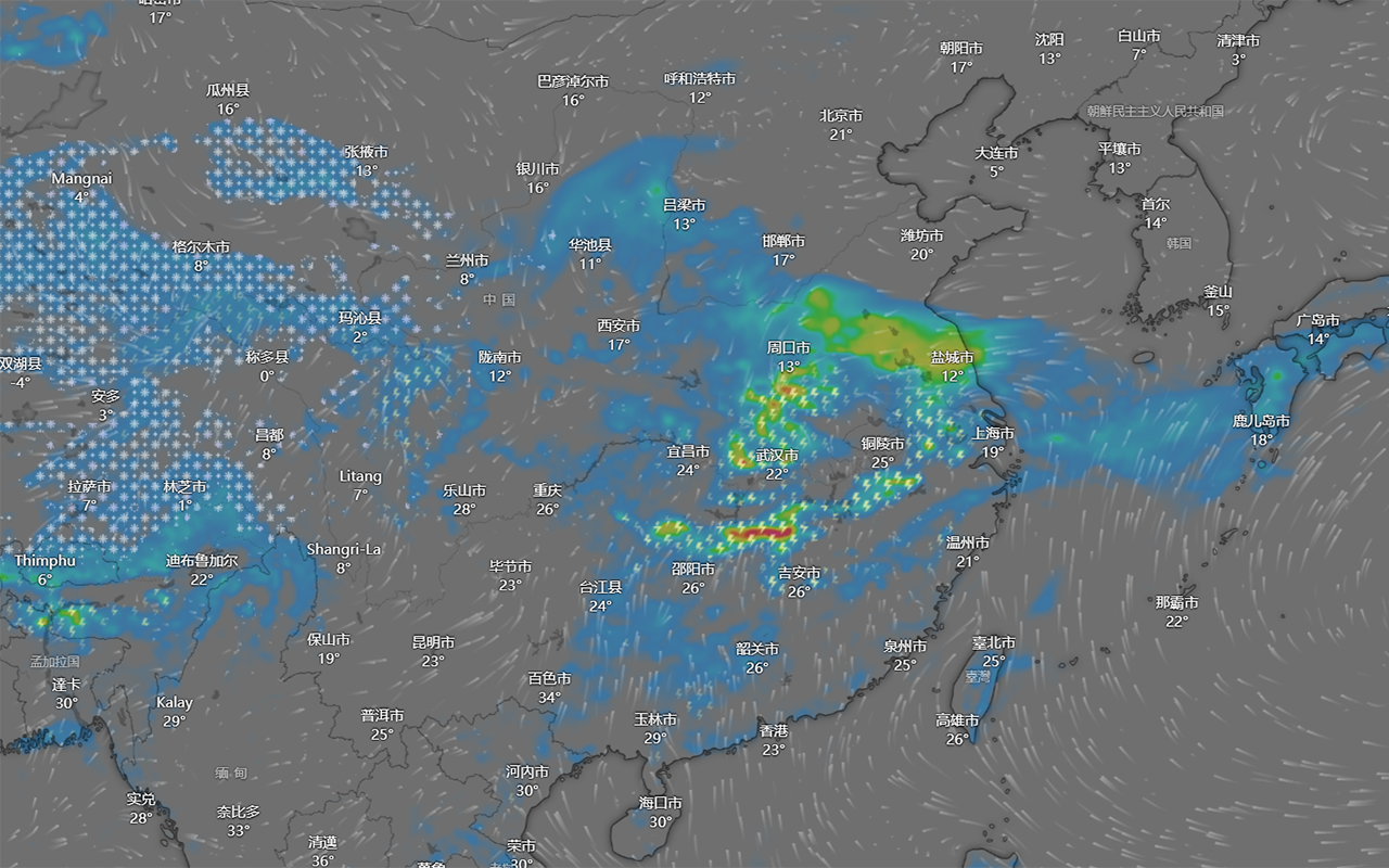 毕竟入春也有段时间了,随着气温的回升,雪和冻雨的形成条件已经不存在了,空气中的能量更多是直接表现为雨量的大小以及雷声和闪电的密集程度,在这些方面,似乎春雷带出来的能量更加充沛一些,因为在雷声和闪电的背后,通常还会有狂风与冰雹。