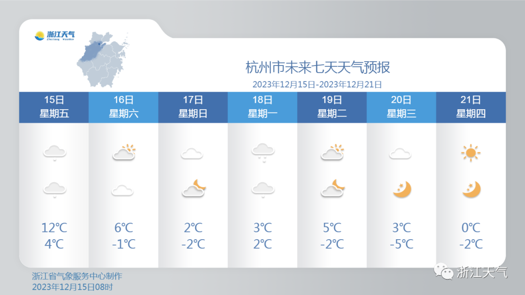 今天傍晚:浙西北地区阴有小雨局部中雨;其它地区多云到阴转阴有小雨。
