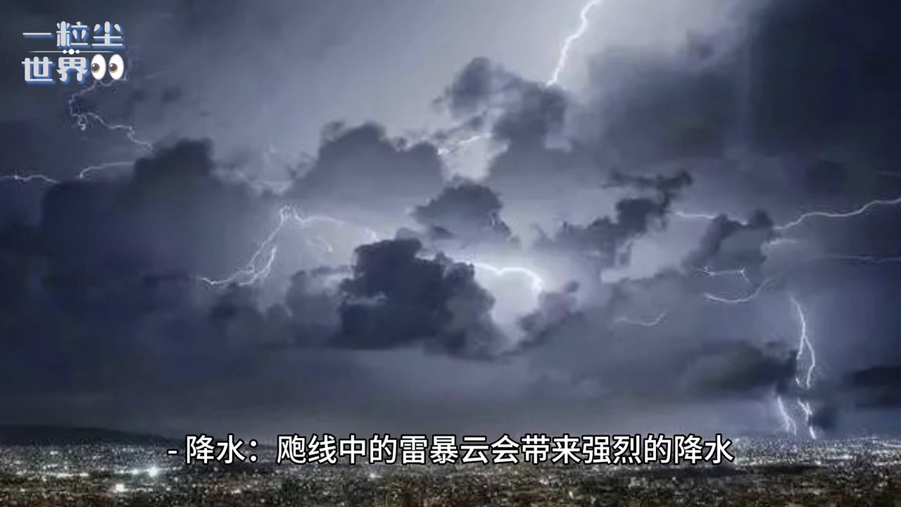 →强风:飑线中的下沉气流和雷暴云的强烈上升气流可以产生强风,有时甚至会产生龙卷风。