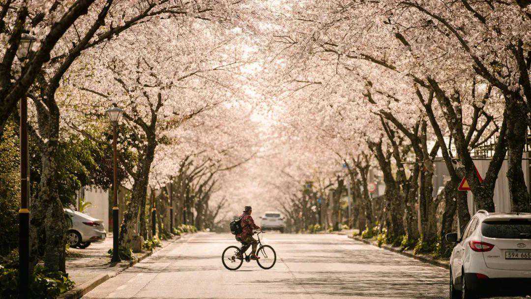 📍「中文洞중문동」:这是济州岛最著名的赏樱地点之一,从天帝渊瀑布入口处开始,途经中文邮局、中文小学,再到中文保健支所,约2公里长的道路两旁都是美丽的樱花,这就是中文樱花路。道路两旁种植着成排的樱花树,每到春天,这里便成为一片粉色的海洋。你可以漫步其中,也可以骑车经过感受花瓣飘落时的那份浪漫与诗意。