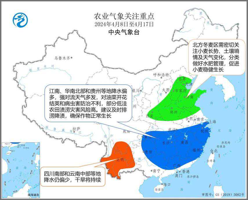 其次,大范围降雨也会对农作物的生长造成一定影响。据预报,明日开始,我国南北各地将迎来一轮大范围降雨,涉及华北、东北、黄淮、江淮、江汉、江南、西南等广大地区,这必然会对正处于关键生长期的农作物产生一定的不利影响。尤其是对于正值拔节期的小麦来说,持续的阴雨不仅会阻碍其生长,还可能引发叶片发黄、根系受损等问题,进而影响产量。此外,强降水还可能引发一些次生灾害,如地质灾害、内涝等,这必将给农业生产带来更多不确定性。