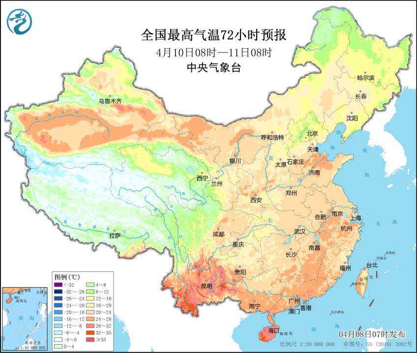 从4月8日开始,随着寒潮影响的逐步结束,我国大部地区的气温开始回升。从今日的最低气温图来看,长江中下游地区北岸的最低气温普遍低于10摄氏度,到本周晚些时候,这一地区的最低气温将逐步攀升至12摄氏度以上。