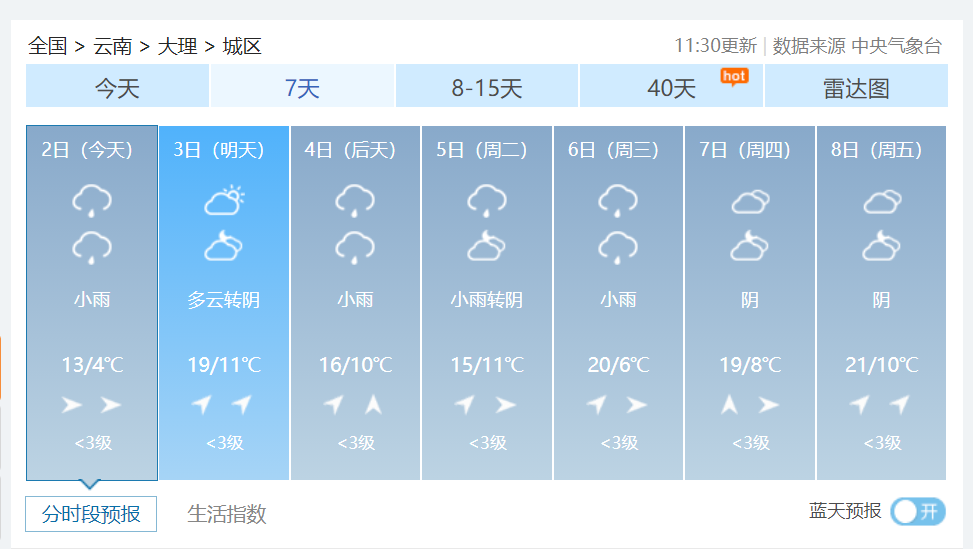 大理未来一周天气情况