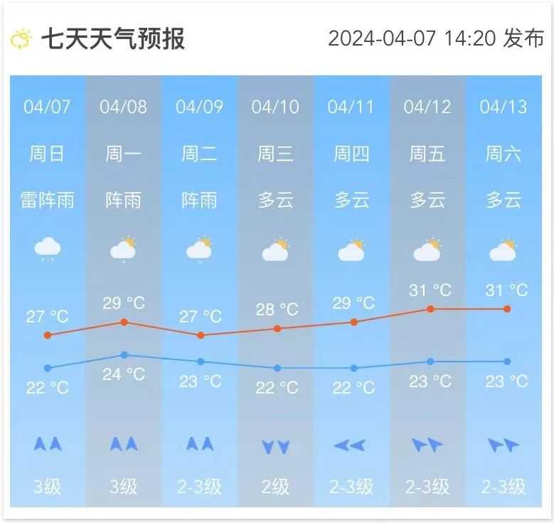 南沙未来一周天气预报