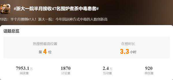 2023年1月22日(大年初一),江苏一对母子在家中用铸铁炭火炉围炉煮茶,因天冷关闭门窗,导致2人一氧化碳中毒身亡。
