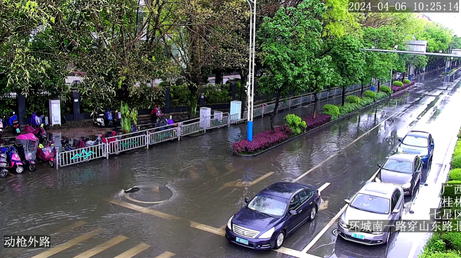 2、七星区积水路段:桂磨路口(七星路右转环城南一路)积水较深,非机动车无法通行,机动车缓慢通行;万达国税局门口有积水,车辆缓慢通行。