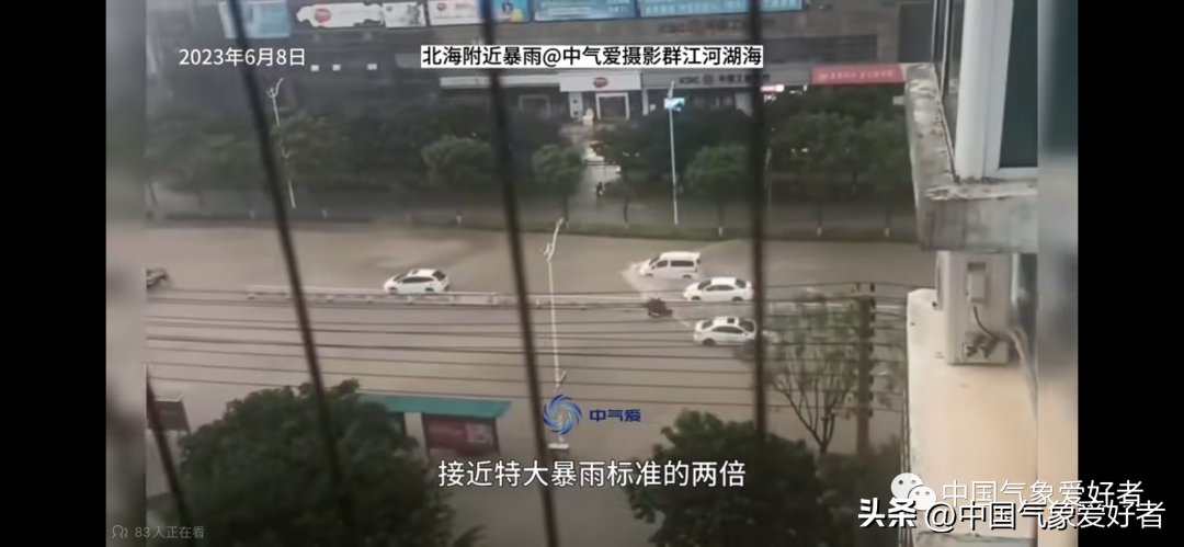 6月7日夜间起,海南西北部、广东雷州半岛和广西南部沿海暴雨不断,截至6月8日上午11点,广西北海国家站24小时雨量达448.8毫米,接近特大暴雨标准的两倍,打破6月纪录。