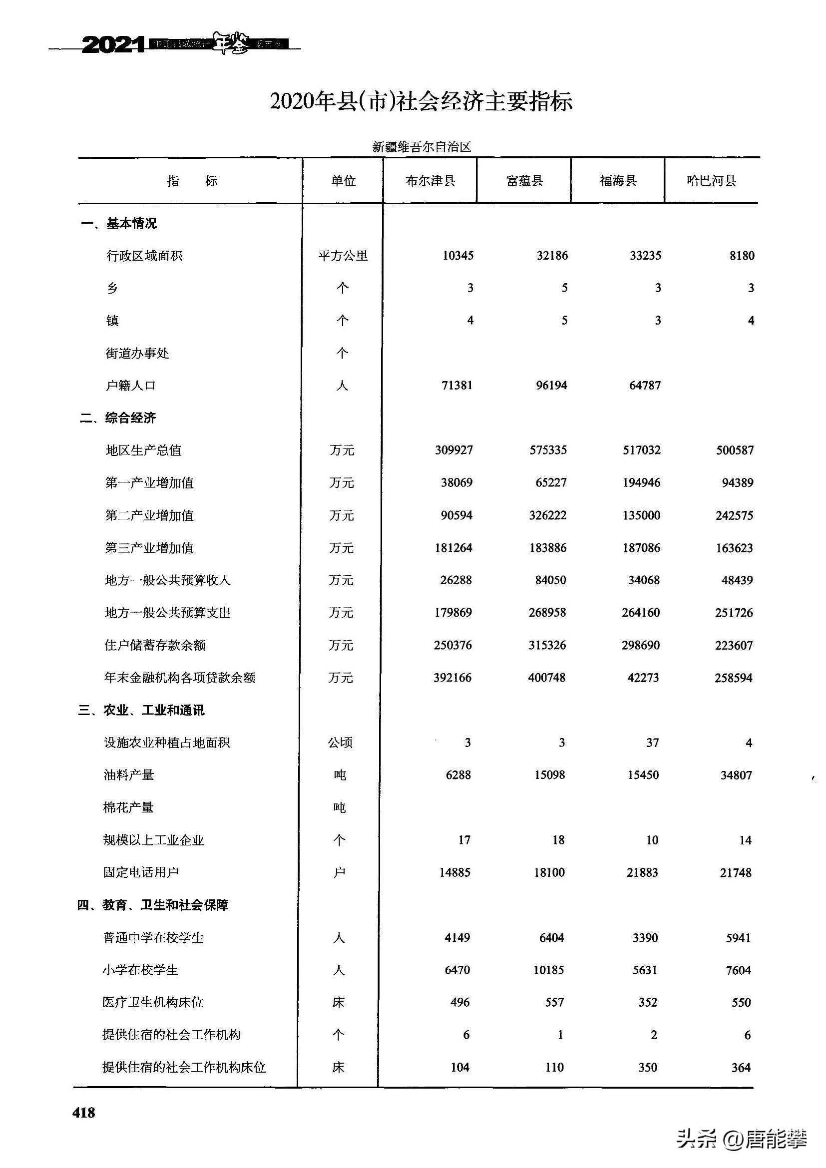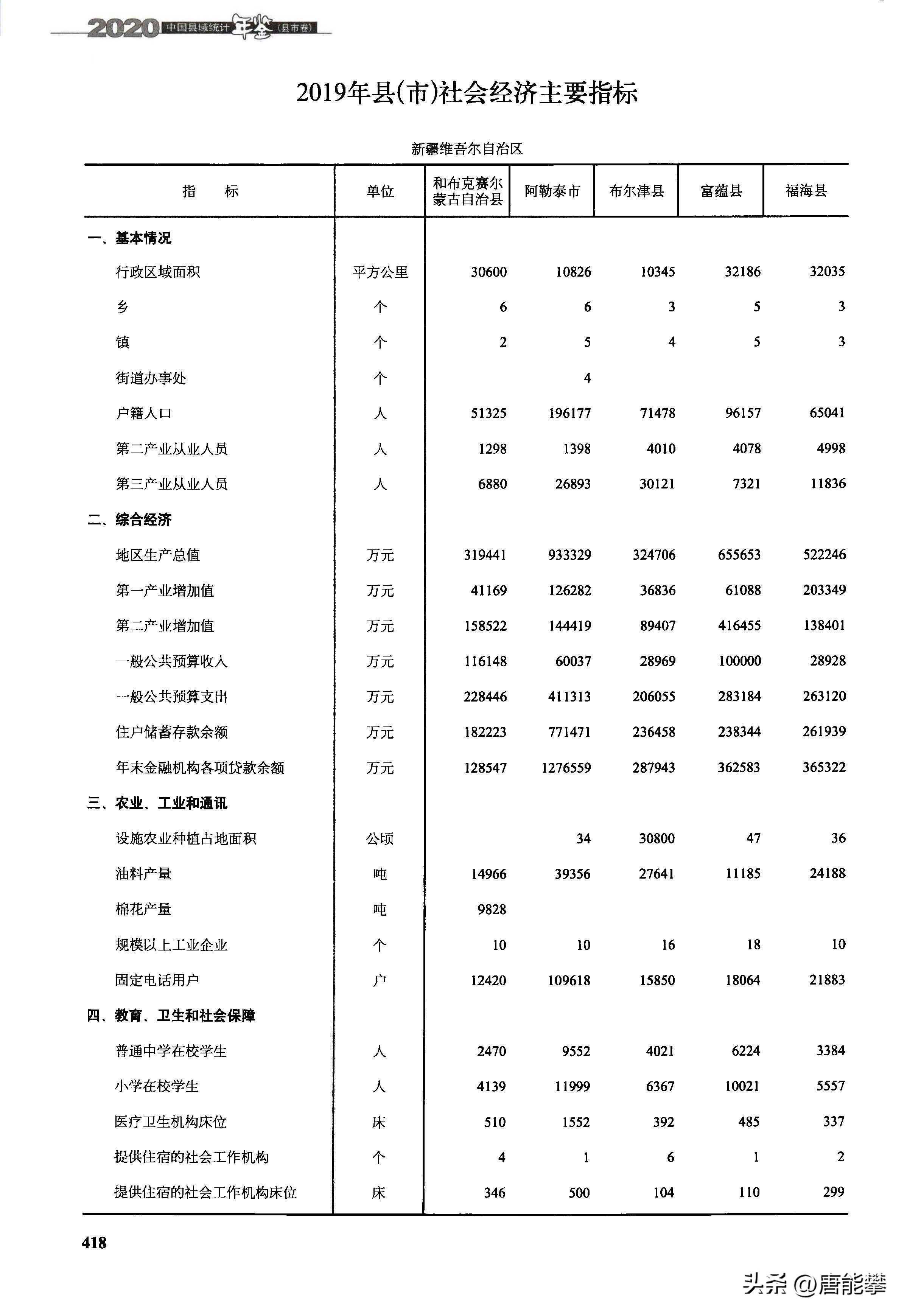 阿勒泰、富蕴、福海、青河63乡镇人口、土地、工业最新统计