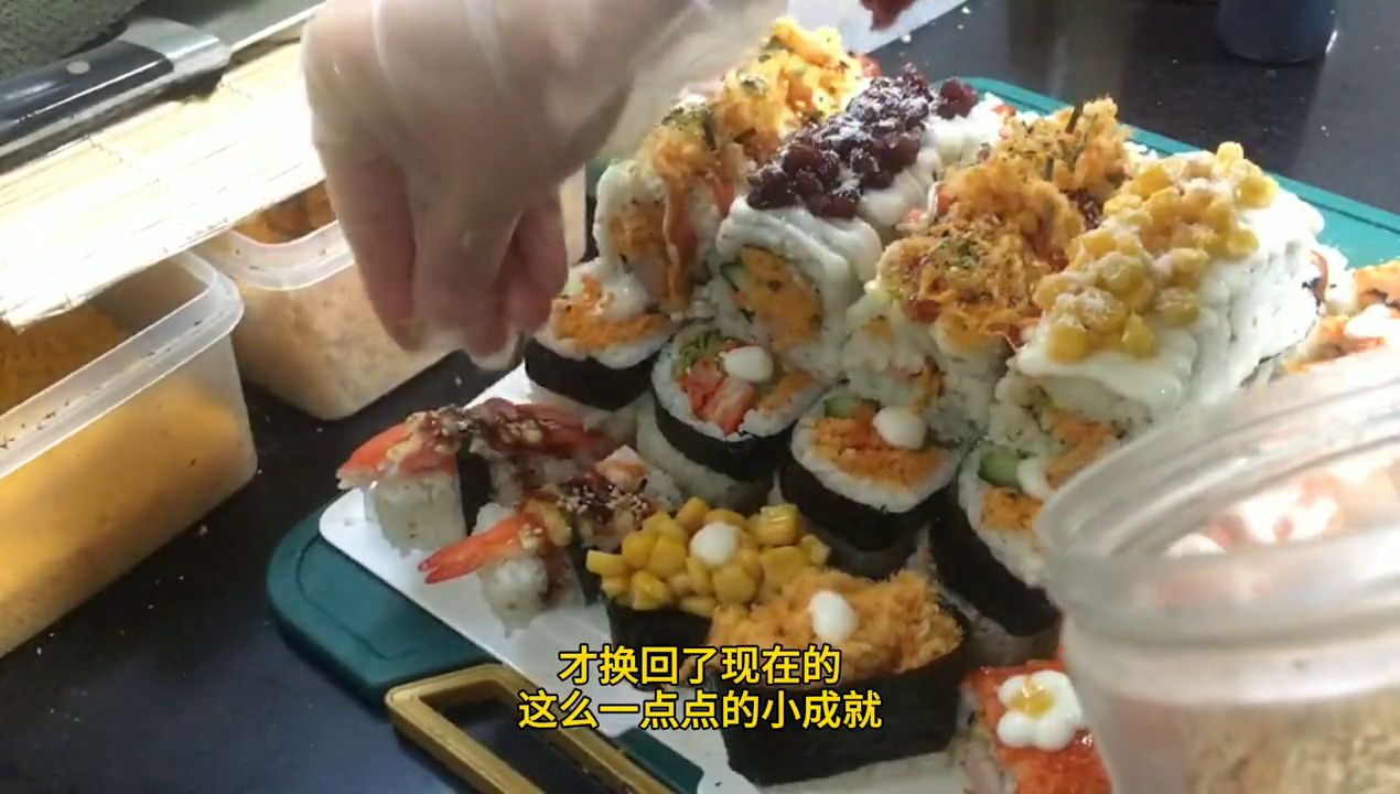 这一年多以来,一个人不断摸索、不断学习、不断努力、不断成长,说实话也付出了很多,才换回了现在的这么一点点的小成就。周一到周五坚持每天下午出摊,周六日还能接到预订单。今天一上午的时间又是3个寿司蛋糕,牺牲睡觉时间起床给姐妹们安排。