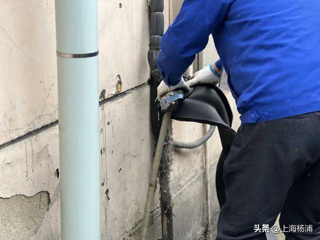 在民京路838弄小区里,物业的维修师傅对小区水管做防冻排查。在一栋居民楼前,大家发现管道外衣使用年限太长,出现破损,便赶忙换上了新的保温棉。