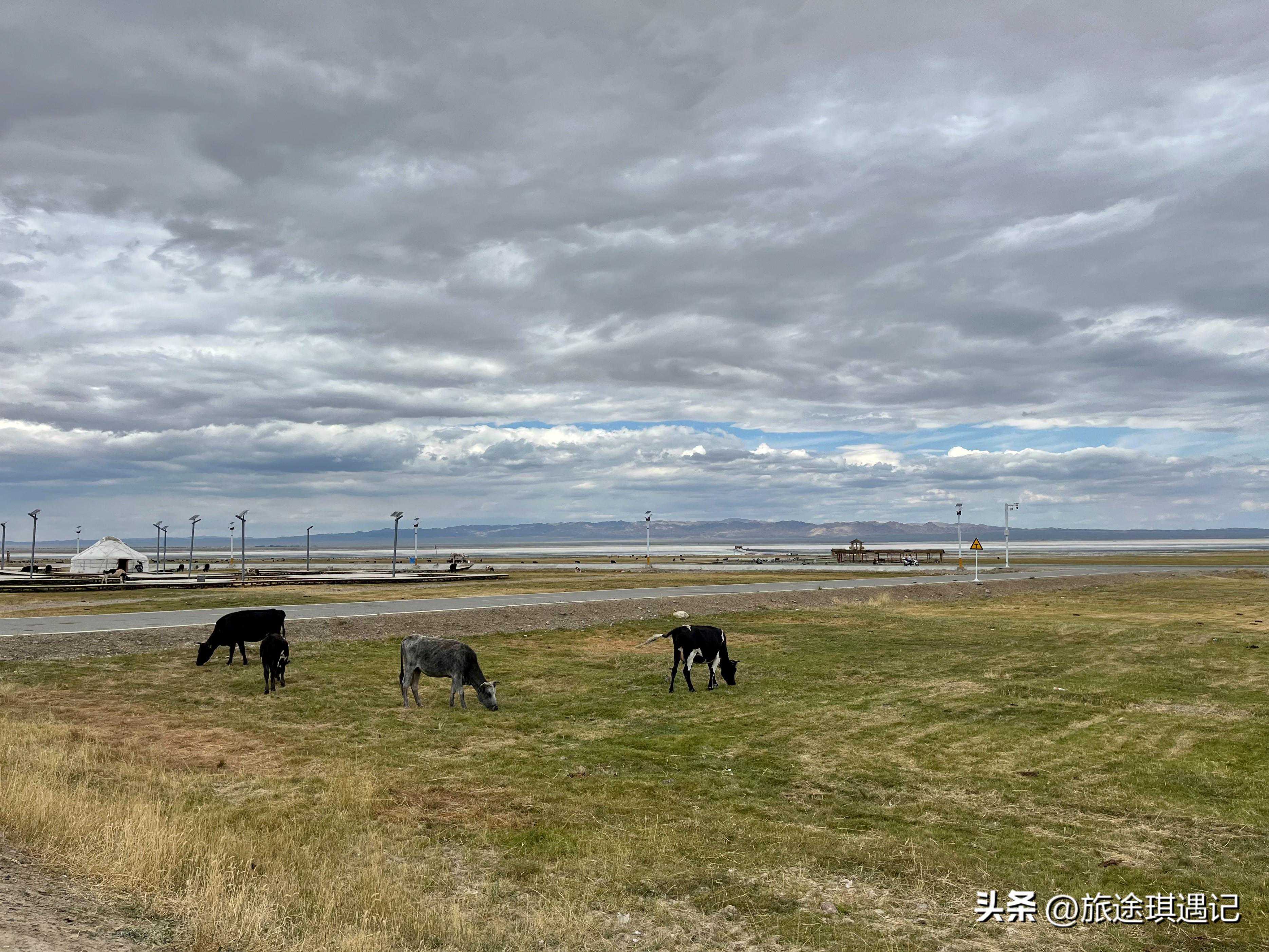 从巴里坤出来以后,我们一路欣赏着草原风光,大概在20公里之后,就会到达巴里坤湖。巴里坤湖这里是免费的,走进景区,映入眼帘的就是一片祥和的自然风光。远处的雪山、草原,近处的湖泊、牛羊,一幅让人感觉非常舒适自在的画面。