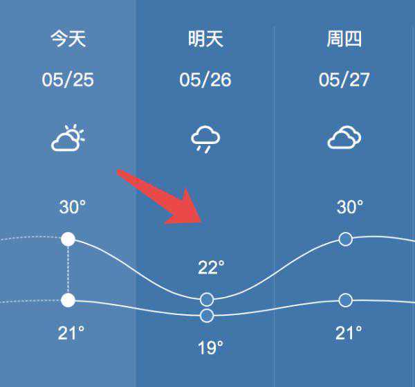 5月26日最高温度∶淮北地区27~28℃,其它地区24~25℃