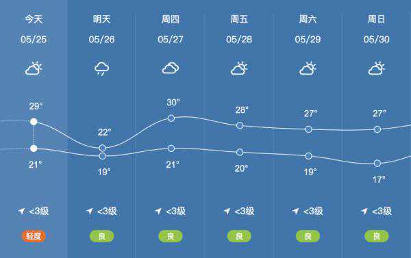 5月28日最低温度∶本省东部地区20℃左右,其它地区21~22℃