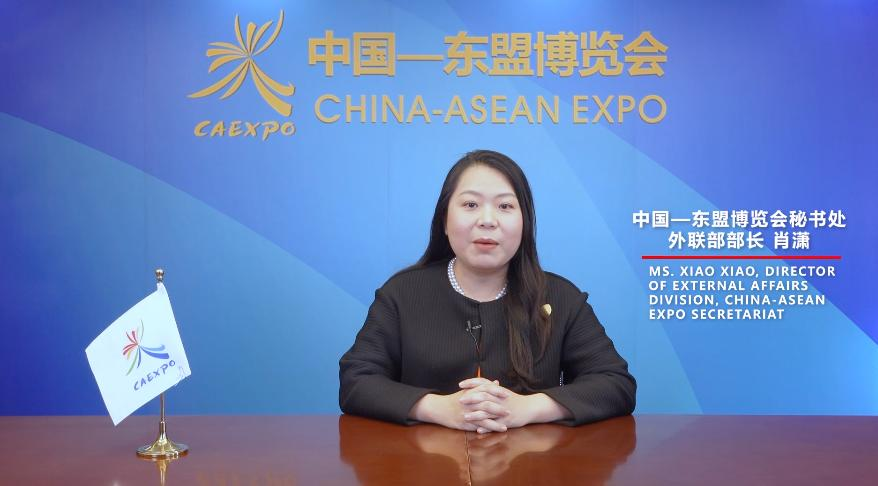 ▲中国—东盟博览会秘书处外联部部长肖潇女士就第19届东博会总体安排进行推介