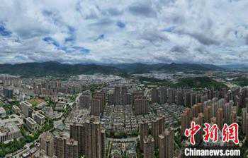 7月26日,今年第5号台风“杜苏芮”逼近福建沿海,福州上空风云变幻。当日10时,中央气象台发布台风红色预警。(无人机照片)中新社记者王东明摄