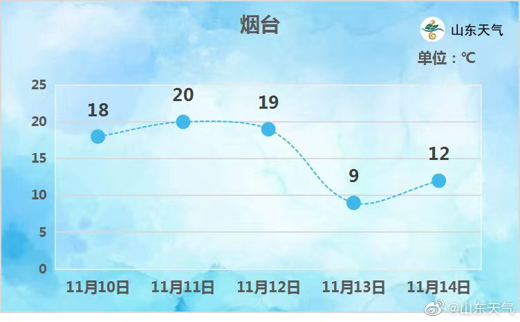 蓬莱气象台2022年11月10日15时15分发布寒潮蓝色、大风黄色预警信号:受较强冷空气影响,12~14日,我区全部镇街将有一次寒潮、大风和降雨天气过程,降温幅度10℃左右。其中,12日凌晨到傍晚,全区有中雨;12~13日,北风,沿海海面最大风力7~8级阵风9~10级,陆地5~6级阵风7~8级;12日下午开始气温下降,预计13~14日的最高气温10℃左右,最低气温1~3℃。请注意防范寒潮、大风天气带来的不利影响。