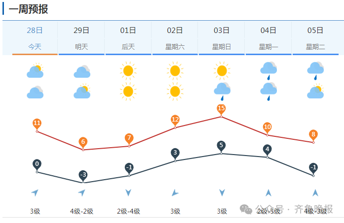 图为济南市区一周天气预报