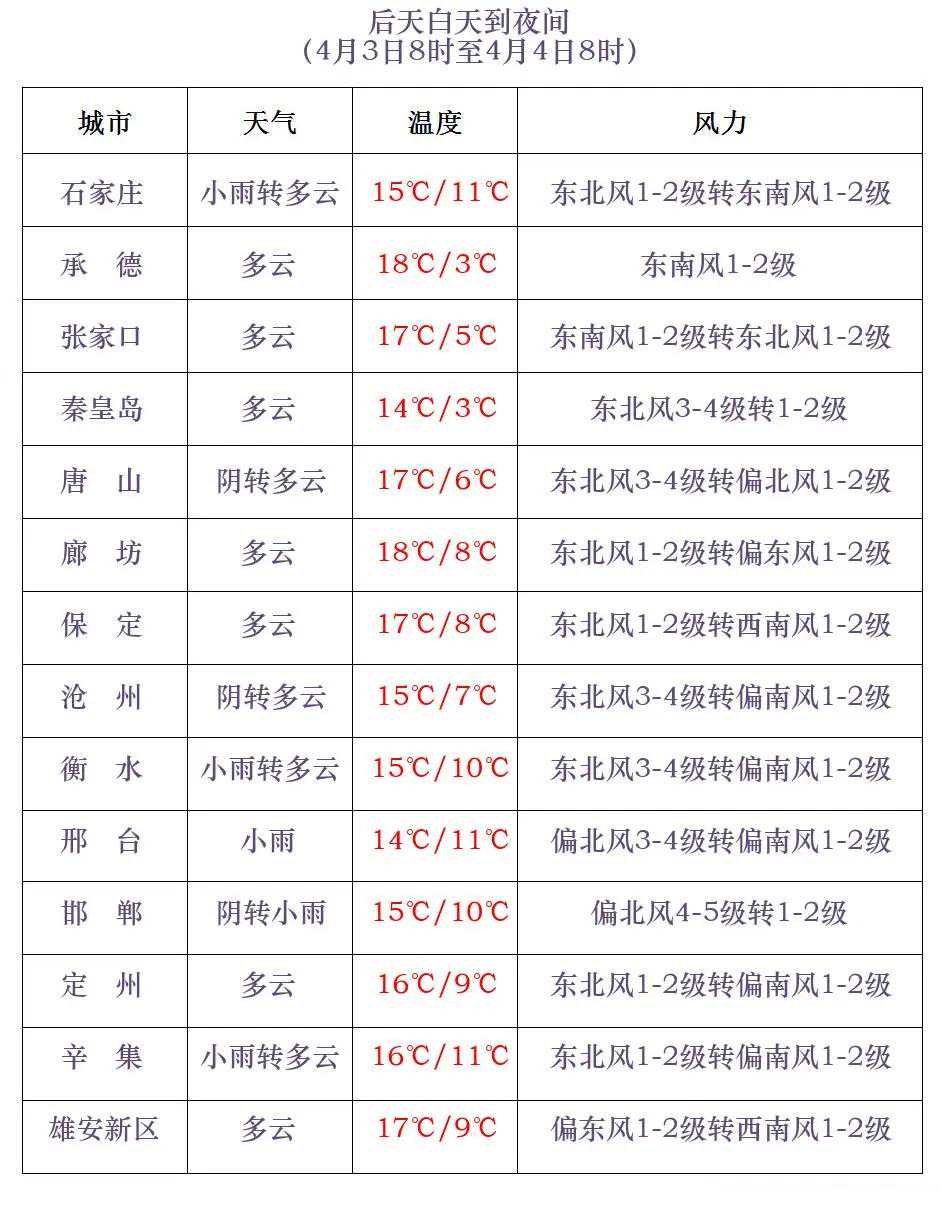 明天夜间到3日,石家庄、沧州以南地区阴有小雨或零星小雨,其他地区多云间晴。明天白天到3日白天,唐山、秦皇岛、沧州、衡水、邢台、邯郸有东到东北风4到5级,阵风6到7级;明天夜间到3日白天,渤海海域和沿海地区有东到东北风5到6级,阵风7到8级。
