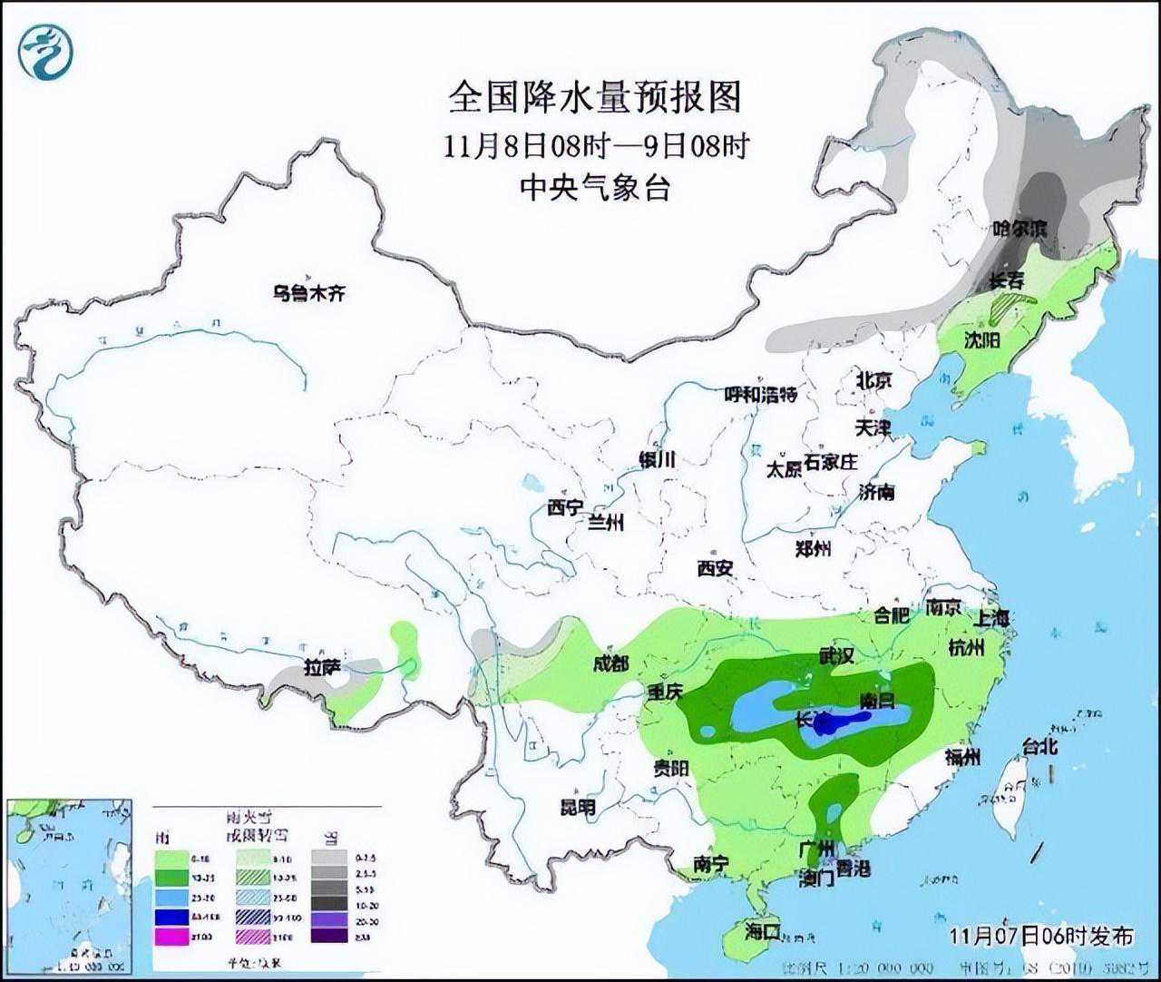 未来一周,影响我国的冷空气活跃,北方地区气温较常年将明显偏低。8日至9日,南方地区将有一次较强降雨过程,黑龙江和吉林部分地区有强降雪。