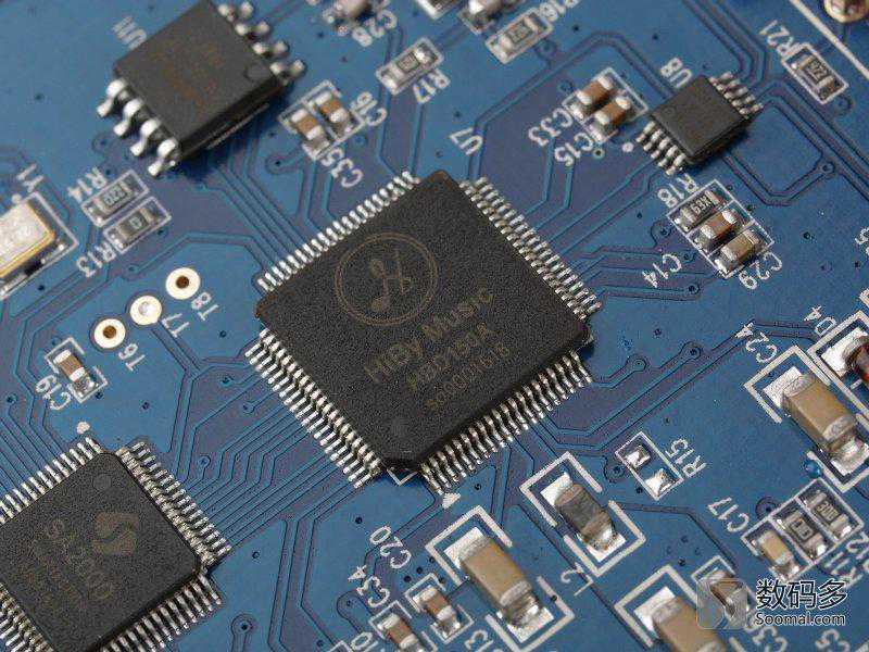 首先先来看USB子卡,从拆解可以看出这是机器内惟一的子卡结构,通过排针可以拆下。这块子卡有HibyMusci的HBD150A定制芯片,推测是一颗ARM核心的SoC芯片,负责USB部分的接口工作。而对数字信号的管理部分是海贝比较老的SA2000FPGA芯片,目前海贝音乐仍然有不少合作伙伴在用这套方案。两颗晶振负责基础时钟。