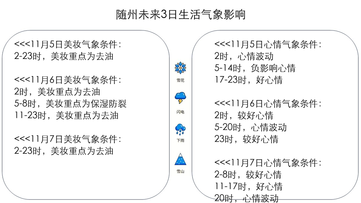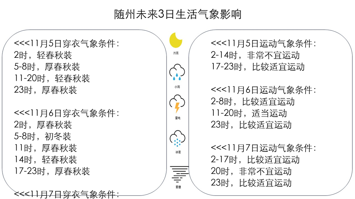 随州未来3日有2天降雨;26.5毫米降水,持续至少12小时;气温逐渐下降,最高温19.3℃,最低温3.2℃;未来3日持续微风