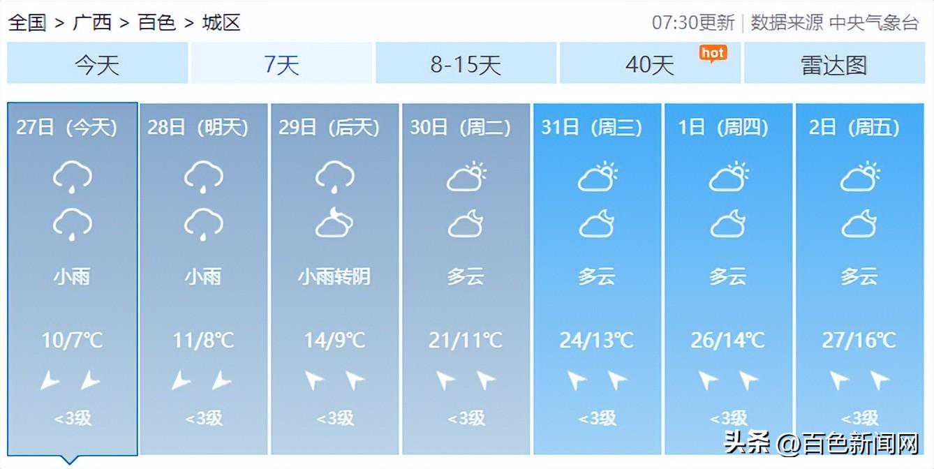 百色各地的气温将逐渐回升