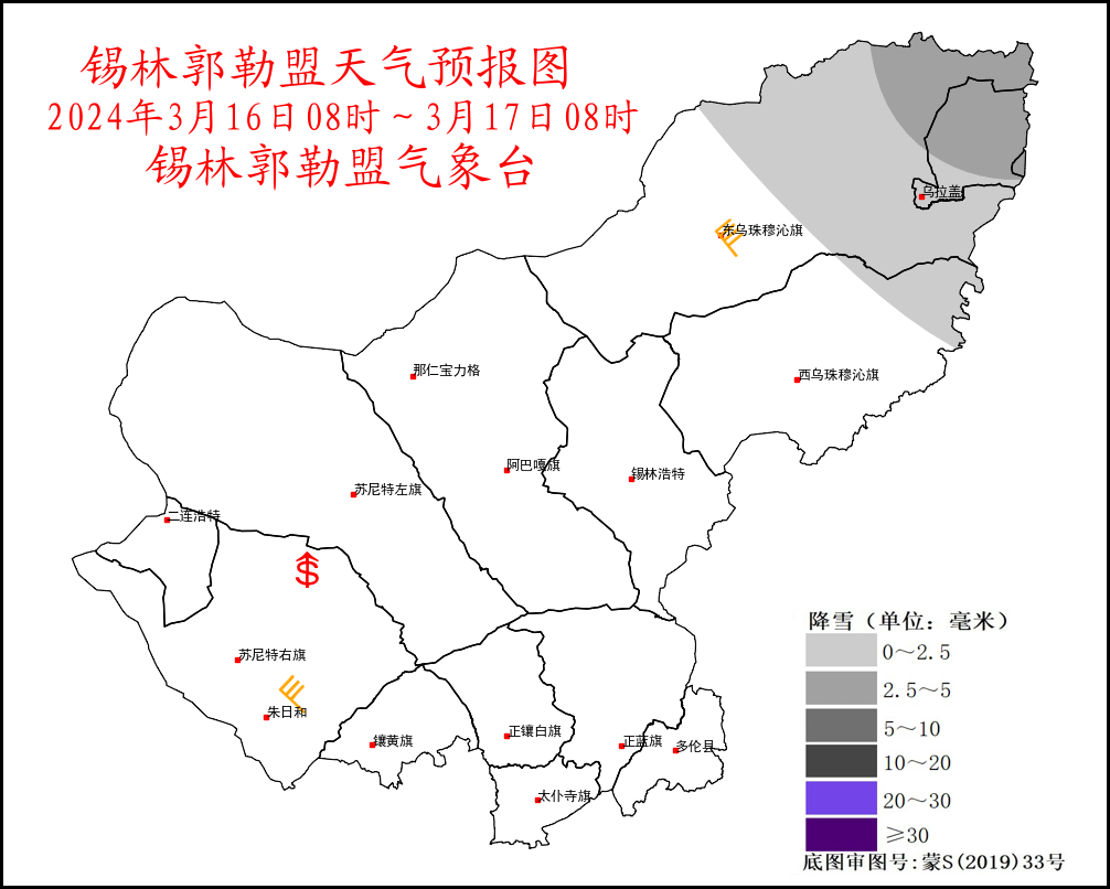 全盟多云间晴,东乌珠穆沁旗东北部、乌拉盖北部有中雪,东乌珠穆沁旗东部其余地区,乌拉盖南部有小雪,6、7级(短时7、8)西北风,西部地区伴有沙尘,东部地区伴有吹雪,气温下降8℃。
