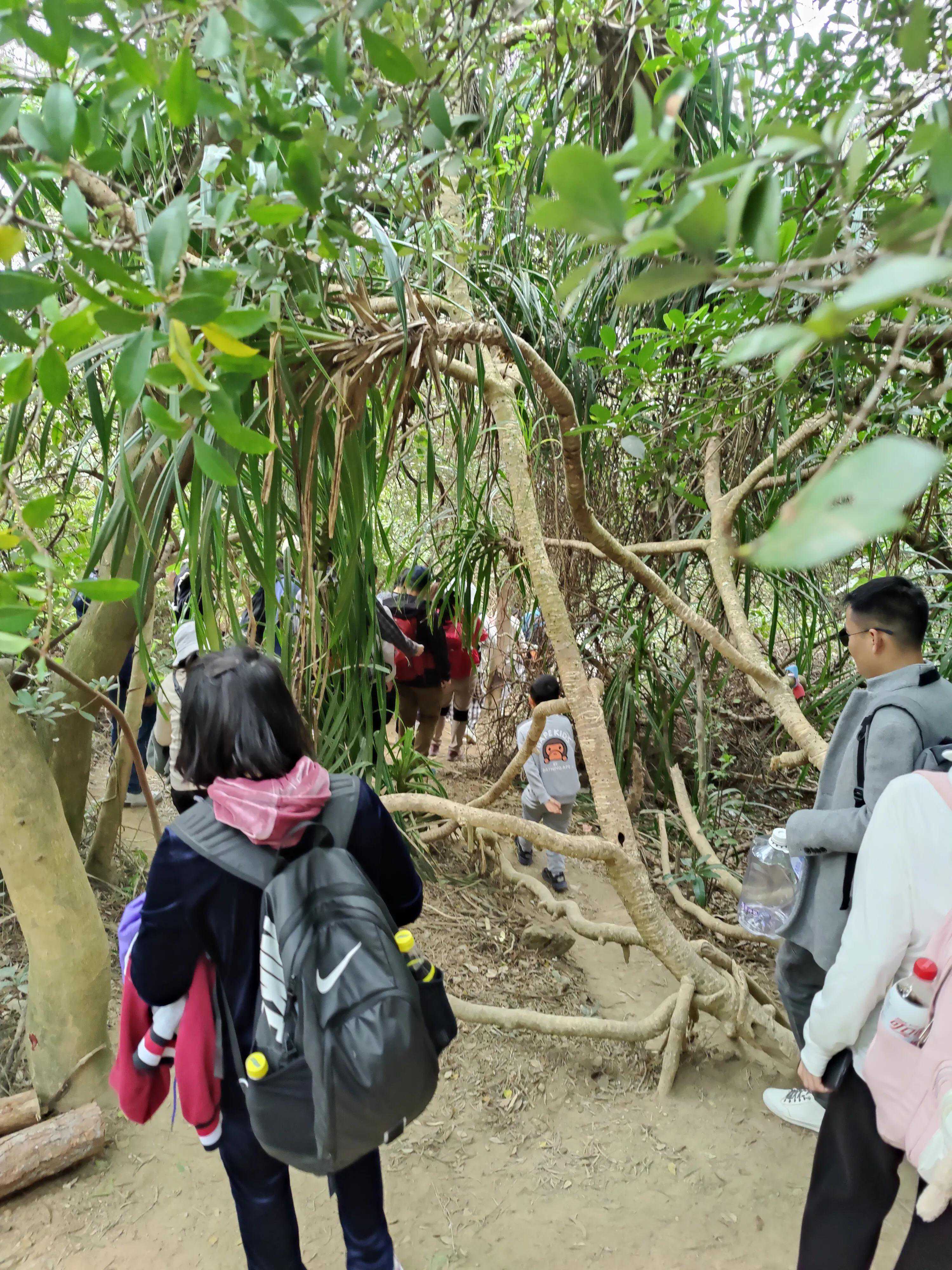 走过第一个山坡会从这里下去,很多藤蔓。要特别小心,节假日这里也是最堵的,走完这段鞋子都是灰,最好不要穿白色鞋子