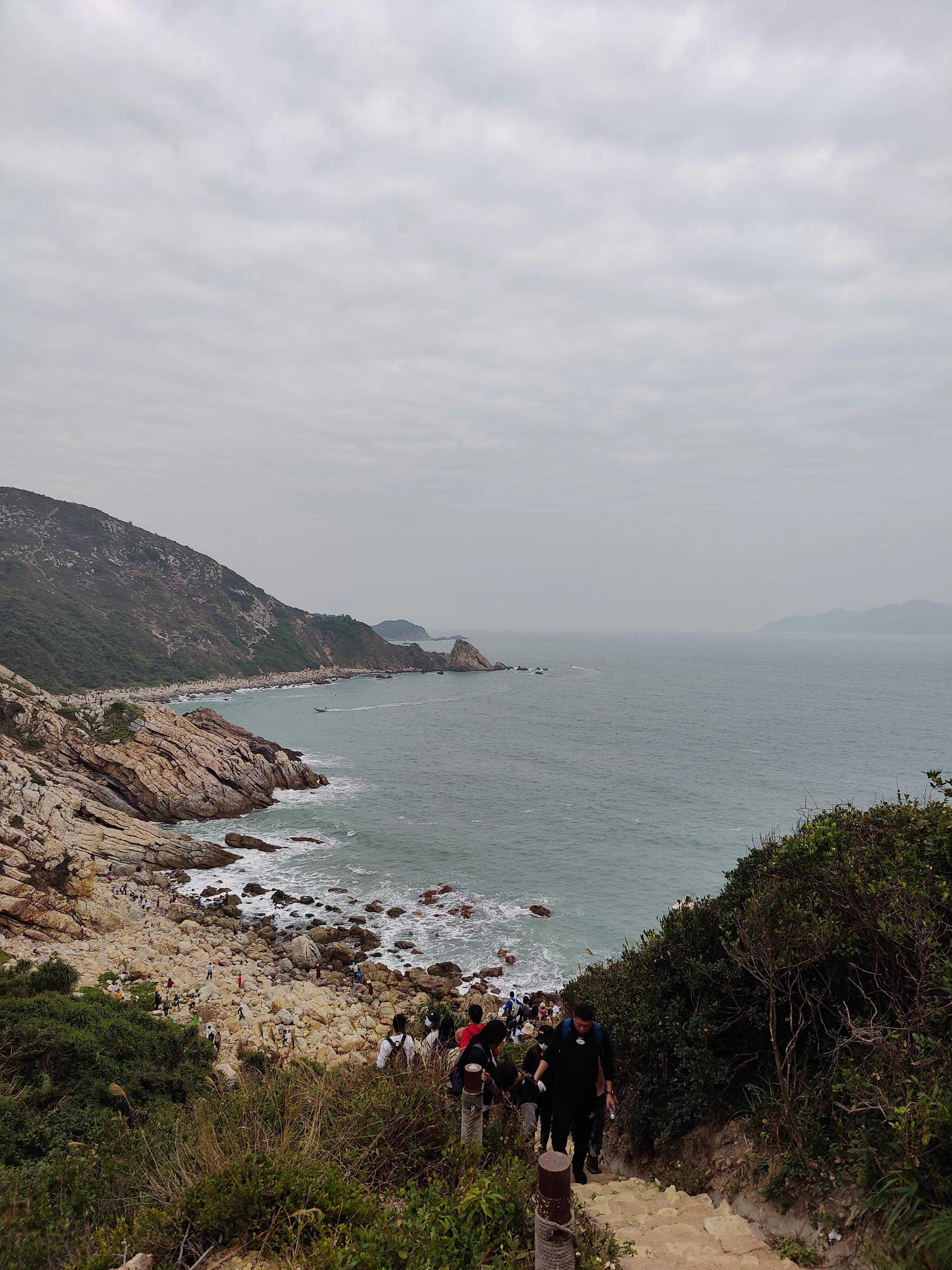 穿过最拥挤的那一段下来就是大海了,由于当天天气不是很好,光线有点暗