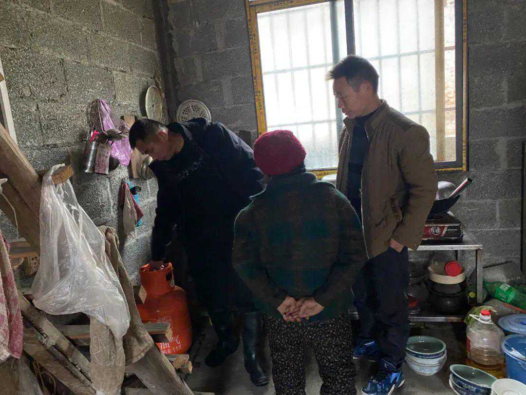 ▲甲朵村两委入户排查煤气安全使用情况。