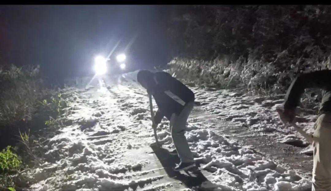 ▲部分村两委、党支部连夜带头清扫道路积雪。