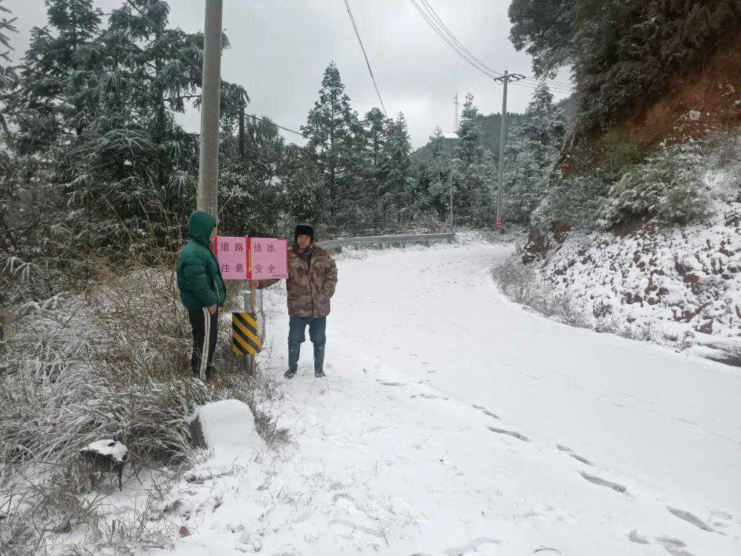 此外,为了最大限度减少雨雪对道路交通安全的影响,乡道路交通安全劝导站干部第一时间及时清除路面障碍,在道路结冰路段设置警示标志8块,部分村两委、党支部连夜带头清扫道路积雪;出动交通安全劝导车辆12辆,对过往出行的群众进行交通安全劝导,提醒他们不必要不外出或减少外出、外出慢行,确保群众生命财产“双安全”。