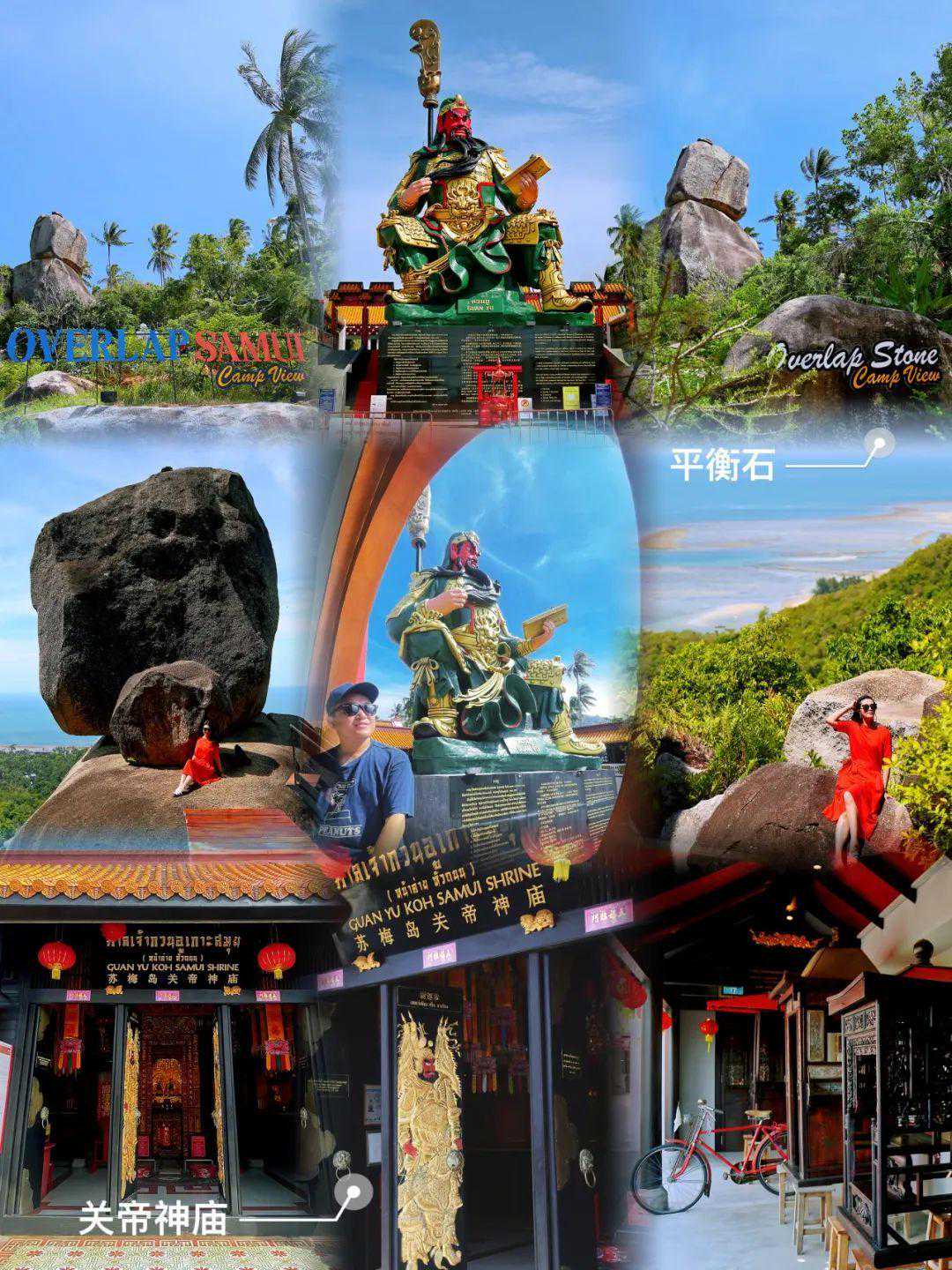 位于拉迈海滩附近的关帝庙(GuanYukohSamuiShrine)和平衡石(OverlapStone),是苏梅岛的小众景点。苏梅岛的关帝庙落成于2012年9月,是由早期来苏梅岛的中国商人捐献建造的,高约16米,非常壮观。