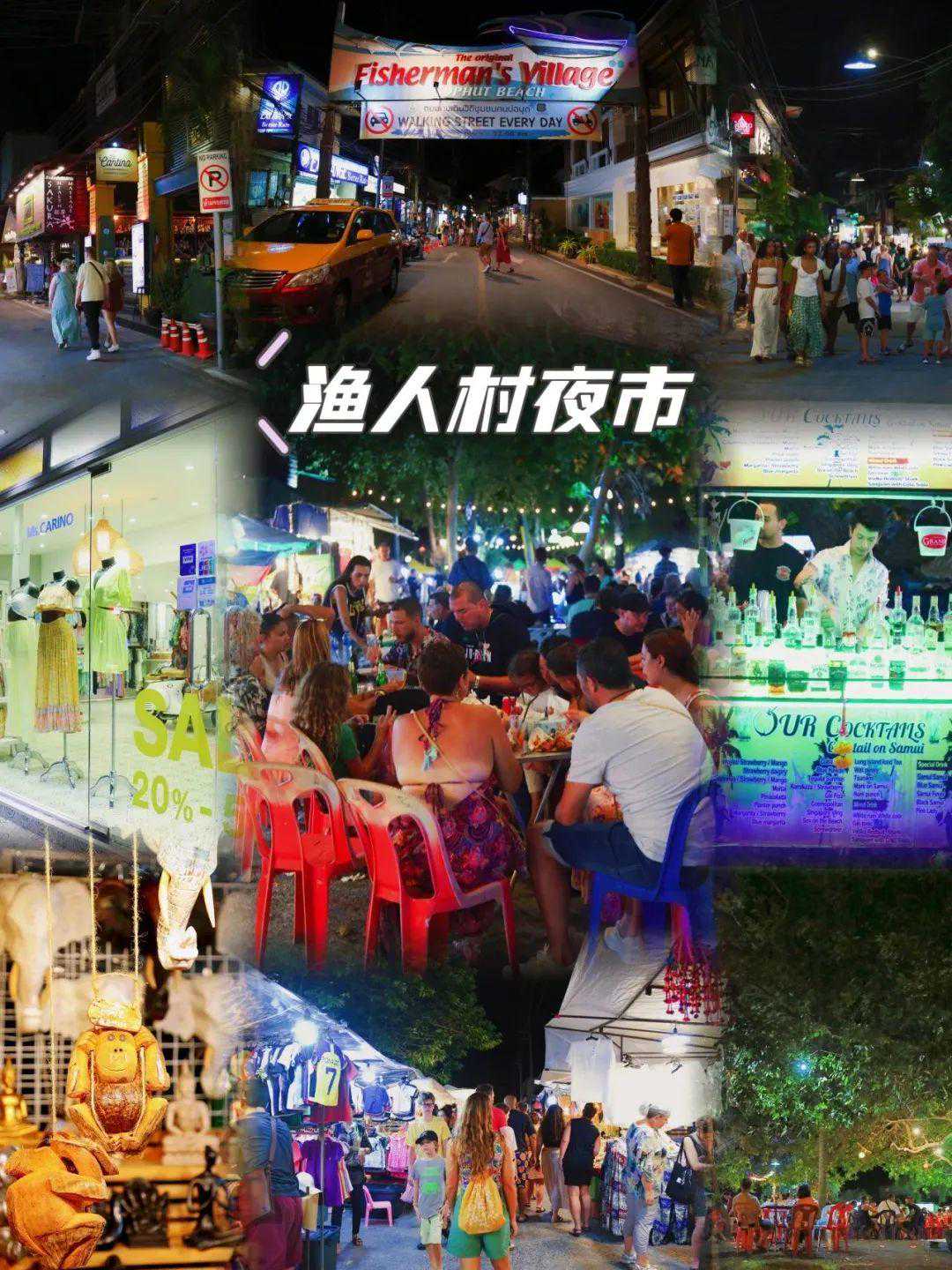 渔人村夜市每天晚上都有,但是每周五最热闹,深受苏梅岛居民和游客的喜爱。你会看到摊贩出售各种当地和国际美食、手工艺品、纪念品等等。建议如果周五在苏梅岛一定要来渔人村夜市感受一下当地的夜生活。