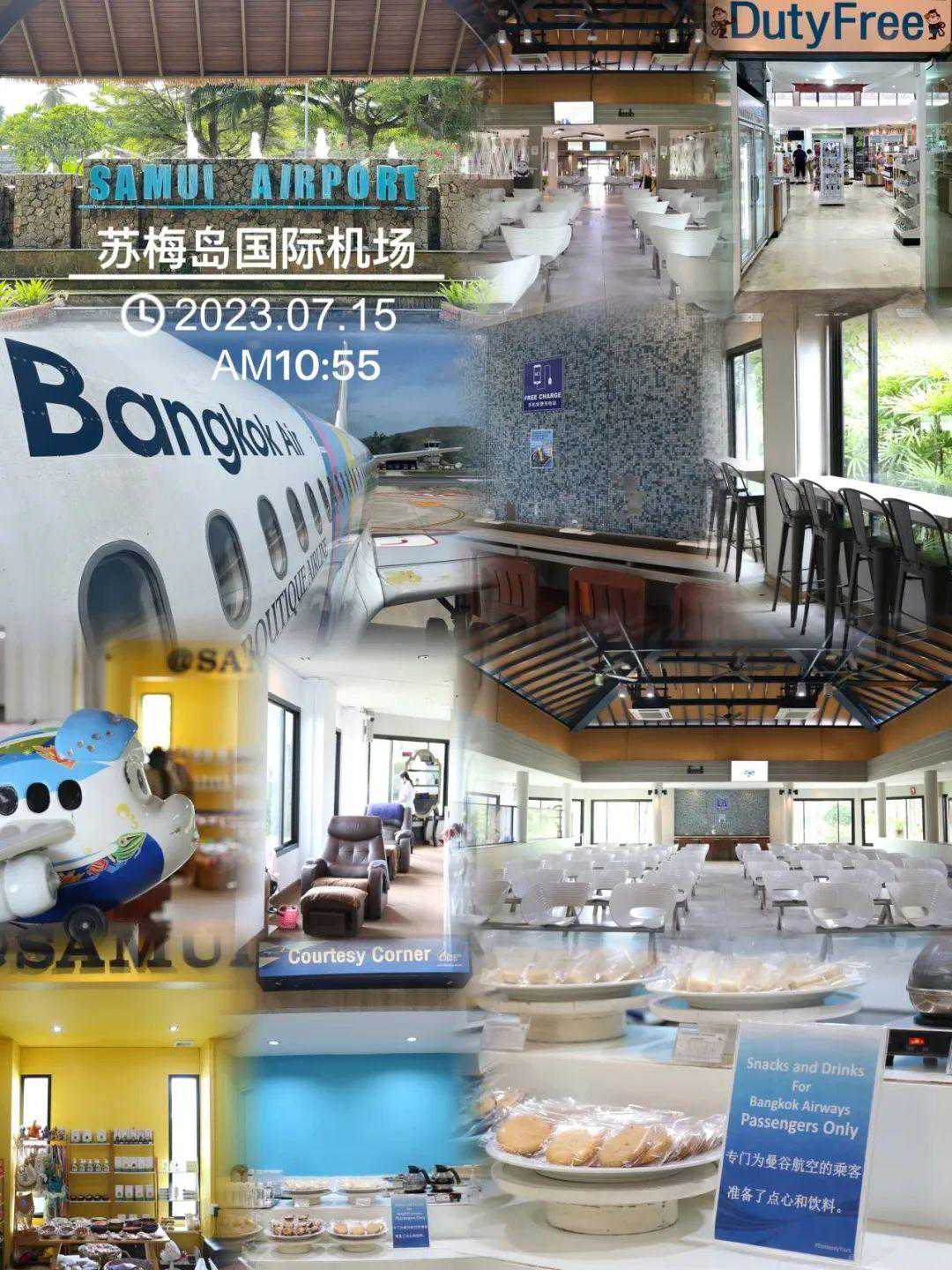 苏梅岛机场是苏梅岛机场被评为世界十大最美机场,曼谷航空为所有乘客提供精品休息室,提供免费的饮料咖啡和点心,足部按摩也非常便宜。休息室外有小型免税店和退税点,机场内也有很多特色小店。
