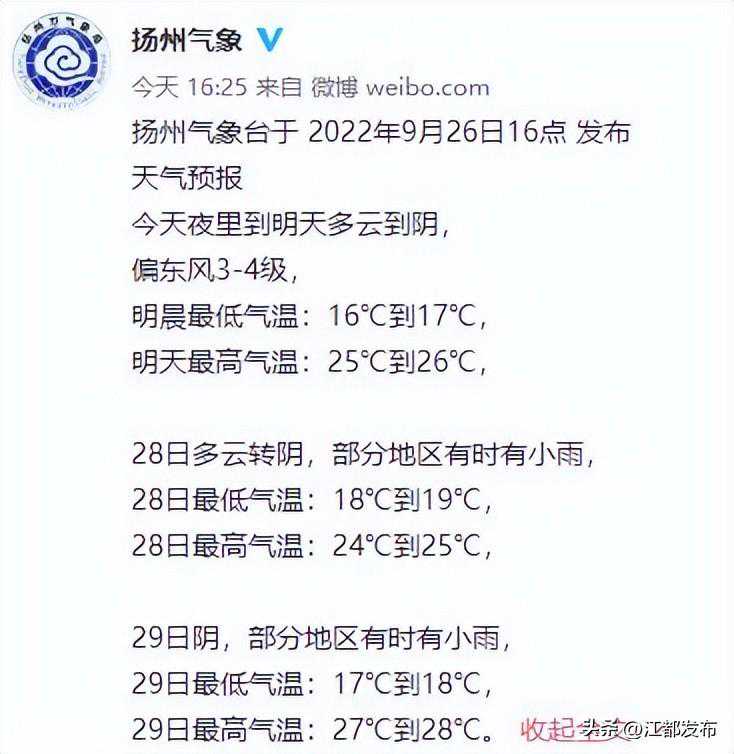 进入9月下旬以来,受冷空气影响,扬州气温下降明显,但22日当天,扬州最高气温回升到了28℃以上,打断了入秋的步伐。扬州市气象部门表示,是否入秋,还得再观察观察。
