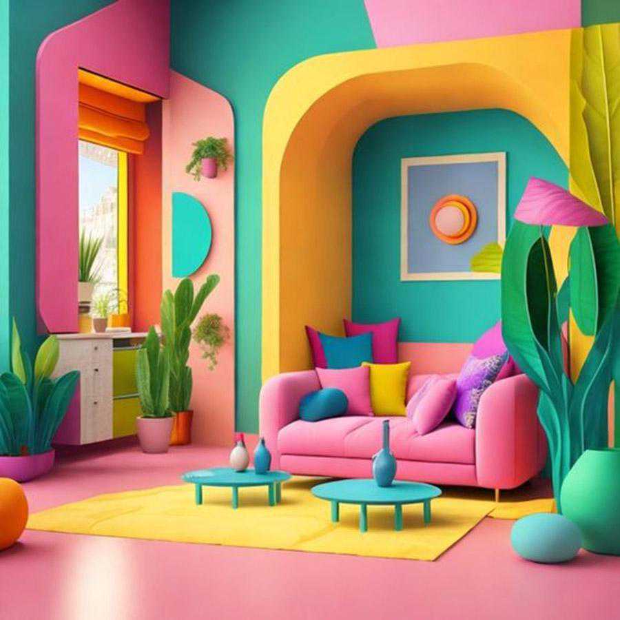 因应大胆、鲜艳的颜色及图案,多巴胺装饰搭配的家具及摆件,应该以简单、干净的款式为主,避免整体氛围显得过于混乱,反而导致反效果。