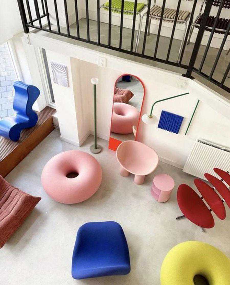 多巴胺装饰的一大特点,就是用色相对鲜明、亮丽!它一改简约、侘寂、工业…等风格的低调、非饱和用色,改以大胆、明亮的配色,为休憩空间塑造出幸福、令人振奋的氛围;加上吸睛的配色,正符合社交平台的喜好,因此一推出即蔚为风潮。