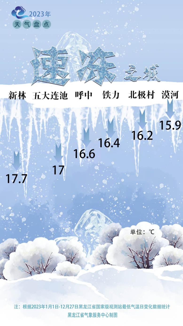 黑龙江省2023年度“极寒”之城排行榜(央广网发黑龙江省气象服务中心制图)