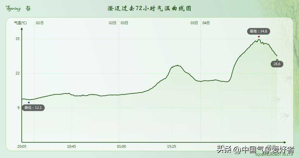 实际上,从气象站监测数据上可见,在3月2日,澄迈气温仅仅在10度出头,3月4日瞬时最高气温达到了35度,在不到两天的时间里,海南岛以惊人的速度完成了一天升温10度,两天升温20度的天气大变迁,前天还是深秋,而如今却急速步入盛夏。