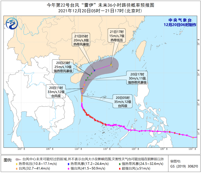 中央气象台12月20日06时继续发布台风蓝色预警: