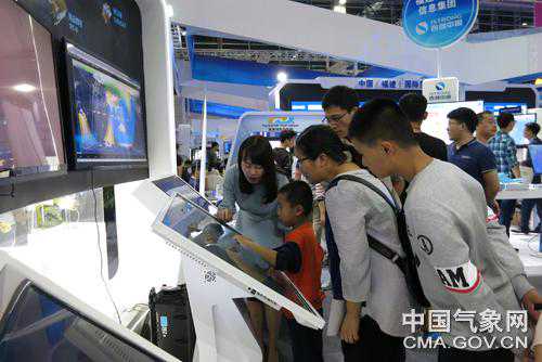 在“风云”卫星展区,工作人员向公众介绍卫星应用情况。李丽纯摄影