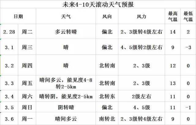 28日夜间:多云转晴;偏北风2级转4级左右;平原地区最低气温2℃,山区最低气温-1~0℃。
