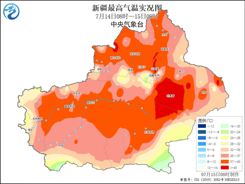 吐鲁番市、哈密市局地可达45℃以上