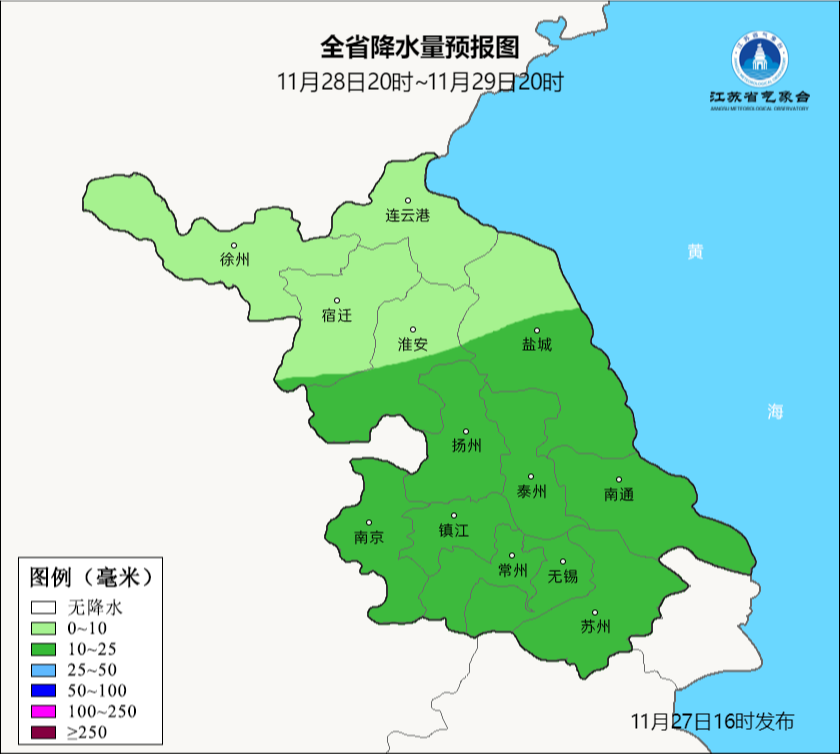 据江苏气象,预计28日中午前后起,强冷空气自北向南影响本省。受其影响,28日至30日全省最低气温将下降12~17℃,最低气温:江淮之间及淮北地区0℃以下,其他地区4℃以下,并将伴有陆上5~6级阵风7级、江河湖海面7~8级阵风9级偏北大风。请注意防范。具体预报如下: